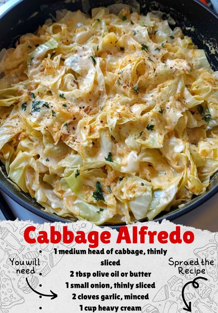 Here’s a creamy, comforting Cabbage Alfredo recipe—a low-carb twist on classic Alfredo pasta that uses sautéed cabbage as the star:
