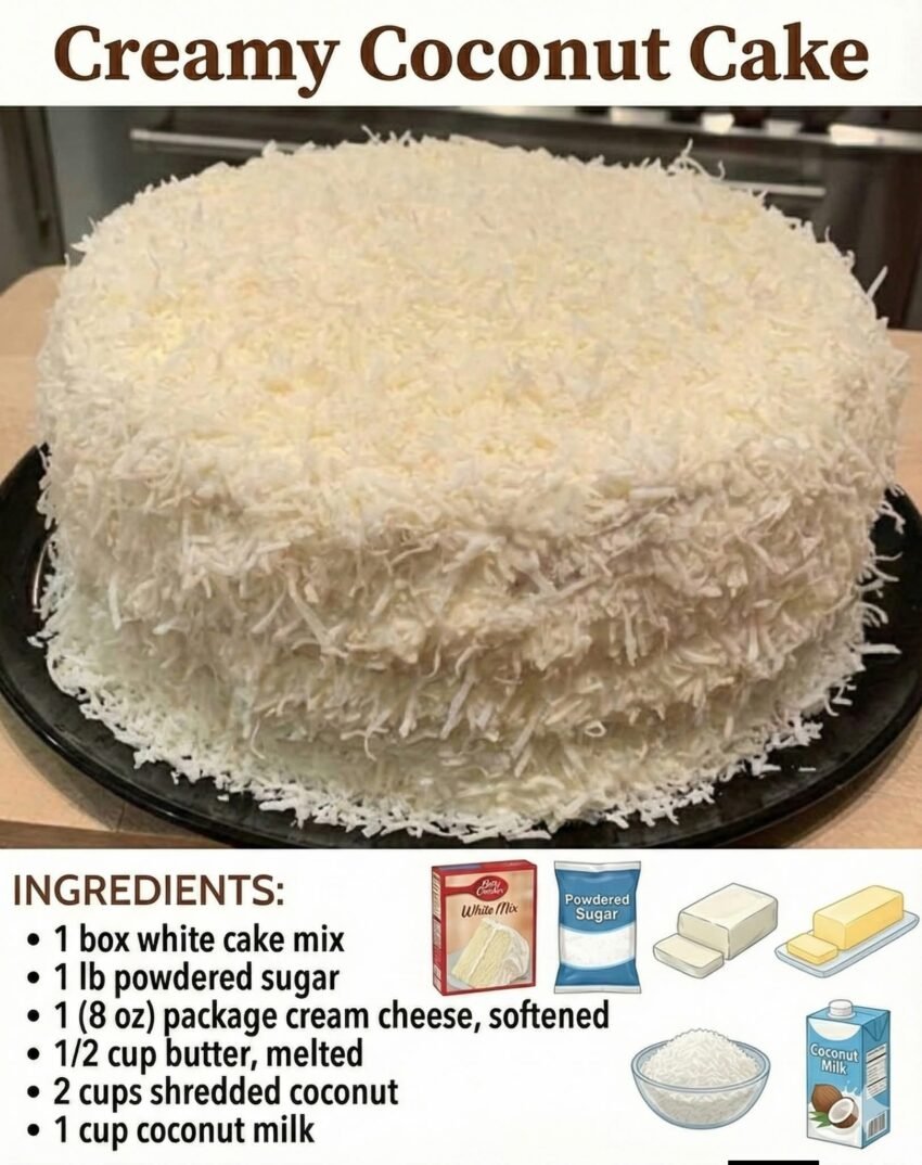 Here’s a moist, fluffy Southern-style Coconut Cake—rich coconut flavor with a soft crumb and creamy frosting 🥥🍰