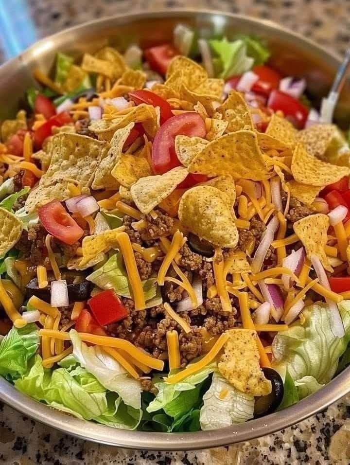 Here’s a Dorito Taco Salad recipe—crunchy, cheesy, and perfect for a quick taco-inspired meal 🌮🥗💥