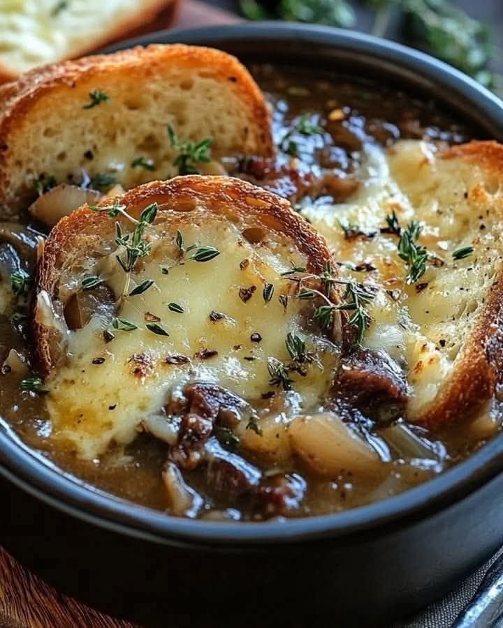 Ah, French Onion Soup—the ultimate cozy, savory, caramelized-onion comfort food! 🧅🥖🧀 Let’s go step by step so it comes out rich, flavorful, and beautifully golden on top.