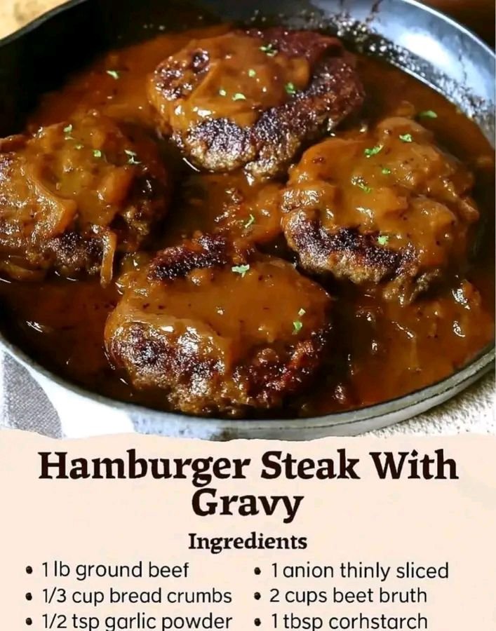Here’s a classic hamburger steak recipe—juicy, flavorful, and perfect with gravy or onions: