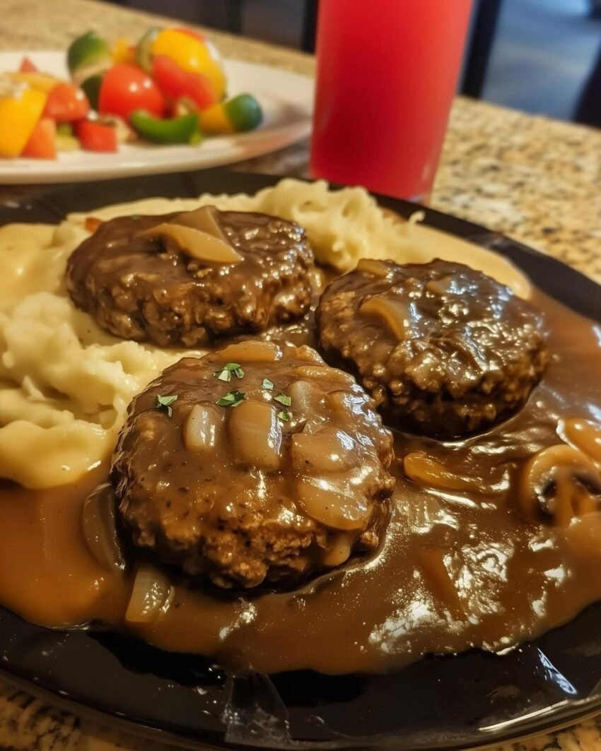 Salisbury steak is a classic comfort food dish made from ground beef shaped into patties and typically served with a rich brown gravy. Despite the name, it’s not actually steak—it’s more like a hamburger patty prepared with seasonings and sometimes breadcrumbs or onions to add flavor and texture. It’s often accompanied by mashed potatoes, vegetables, or rice.