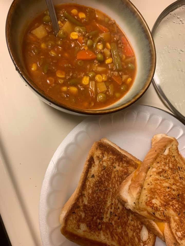 Here’s a cozy, classic combo: vegetable beef soup with grilled cheese 🥣🧀